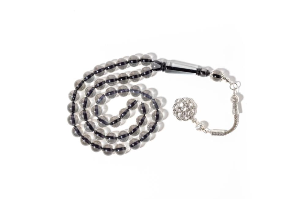 مسباح بكلايت من رواد صب جديد بلون شفاف وخيط اسود وطربزونه معدنيه عدد الخرز ٤٥ خرزة مقاس الخرز ١٠ ملي منتج مميز